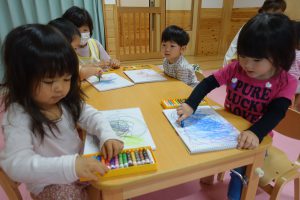 色んな色のクレヨンを使って思い思いの絵を描きました(#^^#)