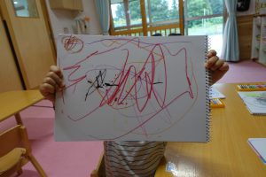 先生:「たくさん描いたねー!〇〇くんは何を描いたの?」