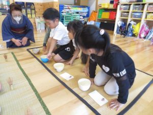 茶道裏千家の先生に茶道の作法を教えていただきました。次回をとても楽しみにしています。