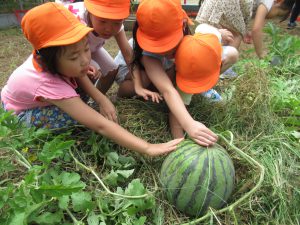 先日よつば農園で大きいスイカが獲れました!(^^)!バンザーイ