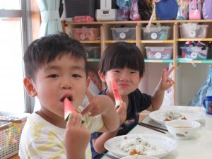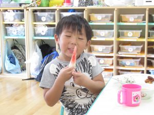 本日の給食にスイカがでました!!