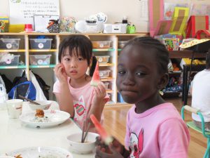 園児:「給食先生よろしくおねがいしまーすっ」