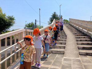 お散歩に出発するときは園長先生とハイタッチ✋をして