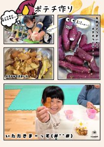 自分たちでお芋を洗ったり先生と一緒にスライスしたり。みんなで頑張って準備をしました♬