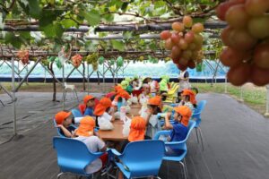 たいよう組とにじ組の子ども達が滑川町福田にあるぶどう園(KURANSA)にぶどう狩りに行ってきました。KURANSAさんのご厚意により、なんとシャインマスカット狩りでした。