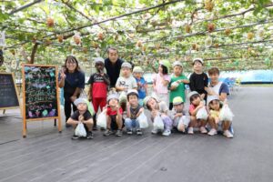 たいよう組とにじ組の子ども達が滑川町福田にあるぶどう園(KURANSA)にぶどう狩りに行ってきました。KURANSAさんのご厚意により、なんとシャインマスカット狩りでした。